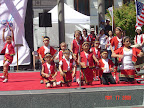 剛過六點來參加的客人不斷的進入會場,看起來各式各樣的人都有,像是美國、墨西哥、印度、越南、日本、菲律賓、中東,真的是一個蠻多元文化的活動,不一會兒 Miranda 在舞台上跟所有觀眾介紹台灣學校之後,我們的第一個表演就要開始了,身著山地服的小朋友們載歌載舞的表演山地舞,跟其他表演團體比較靜態的音樂演奏,我們的勁歌熱舞不但一下子就把場子給弄熱而且馬上吸引很多客人的注意。趁著十五分鐘換場的空檔,小朋友換下一場西北雨的服裝和道具,當音樂響起一出場嚇了一跳,周圍突然增加差不多三倍的客人,我們有趣的服裝、大紅轎子、敲鑼和小燈籠,再加上每個小朋友用自己的小麥克風大聲唱歌,圍觀的客人越來越多,還有不少人攝影和照相,當我們表演完 Ilha Formosa - Touch Your Heart 後現場馬上響起如雷的掌聲,真是非常成功的表演。